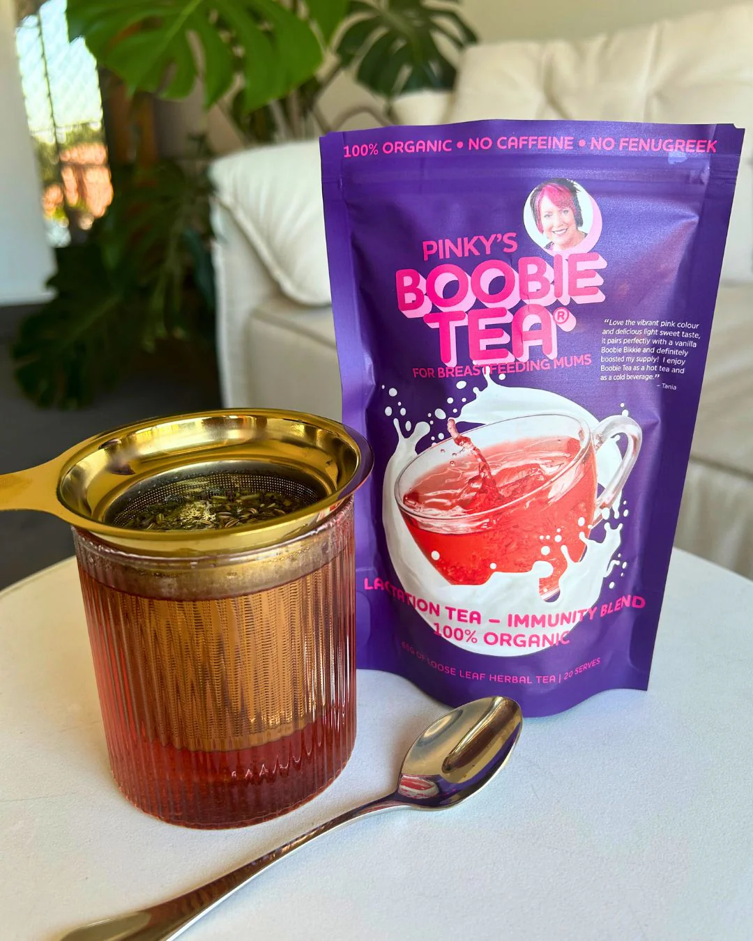 A gorgeous gold coloured premium stainless steel mesh tea infuser is now available to purchase on our website as the perfect compliment for our loose leaf Boobie Tea's.